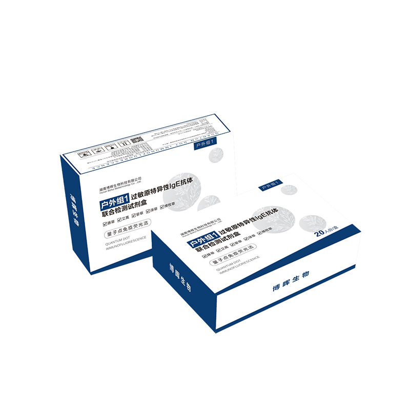 本产品基于量子点免疫荧光层析手艺,,,,,可用于体外定量检测人血清或血浆中常见户外过敏原特异性 IgE 抗体。。。。。。。。
